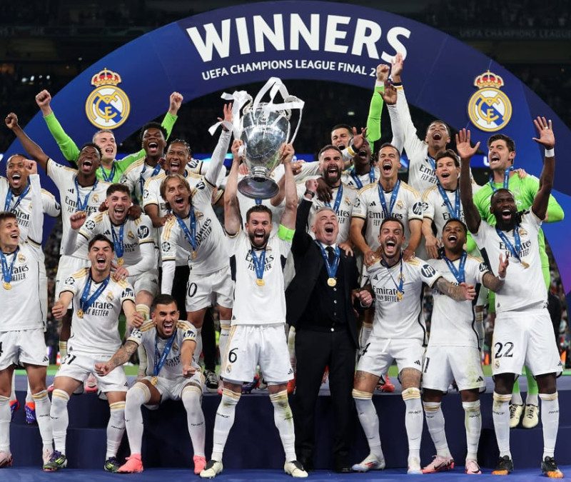 Gelar pamungkas Real Madrid sendiri didapat setelah akhirnya berhasil menjadi juara Liga Champions untuk musim 2023/2024. Real Madrid membungkam Borussia Dortmund dengan skor 2:0 melalui gol Dani Carvajal dan Vinicius Junior. Hasil pertandingan itu sekaligus mengantarkan Real Madrid menjadi juara Liga Champions terbanyak yaitu 15 kali.